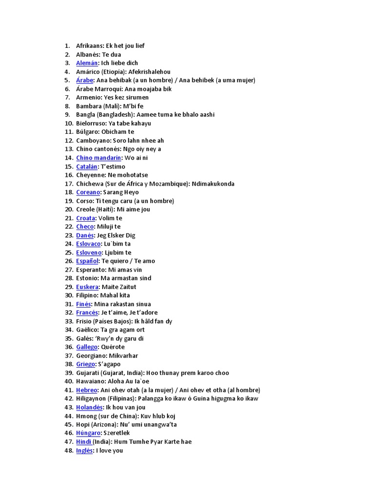 100 Te Amo En Distintos Idiomas Pdf Familias De Idiomas Idiomas
